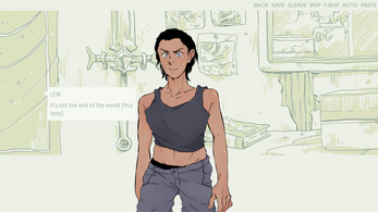Finally finished playing this, and I love it a lot <3 Anno is such a lovable asshole of a protagonist, and the supporting cast is really standout. They all feel like they have their own stories that we just catch a glimpse of, and character designs with varied body types is always refreshing to see. I wish I knew more about the setting, but the vagueness and lack of infodumping works well for the story. Caught a few typos (will post them later) but no other technical issues. Anyway, well done, especially for your first VN. Looking forward to future works from you!